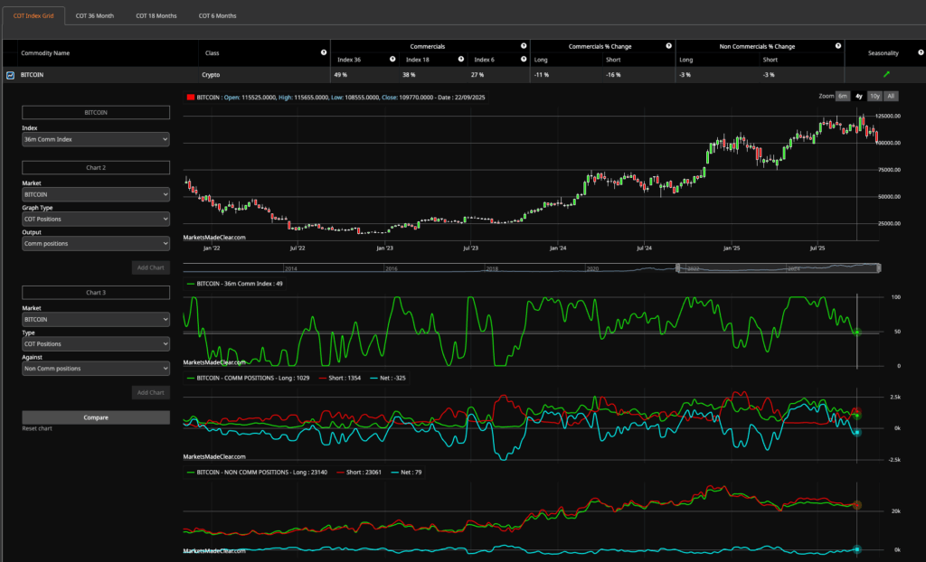 What stands out isn’t aggressive directional betting, but rather reduced overall participation. Commercial long exposure fell 11% while short exposure dropped 16%, pointing to cautious sentiment rather than outright bearishness.