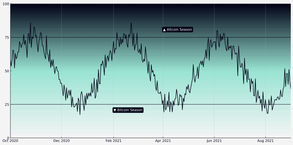 Similarly, when the index is below 25%, the market is heavily invested in Bitcoin, which means altcoins are less attractive as an investment in that time frame. Over time, investors have used this metric to identify investment opportunities when Bitcoin is trading sideways.